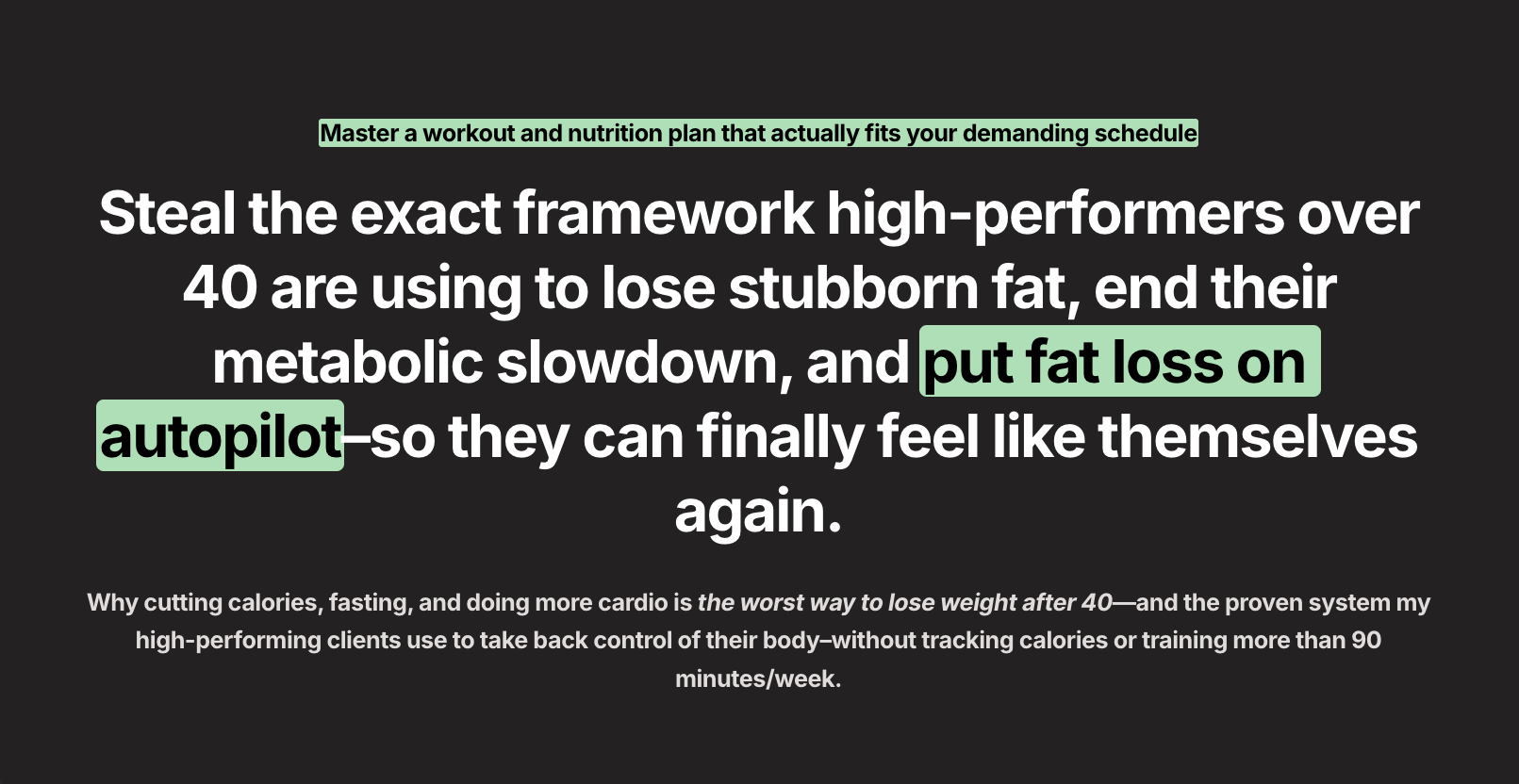 In this short video, you’ll learn why fat loss becomes harder after 40 — and the metabolism-first system high-performing professionals use to lose stubborn weight without calorie tracking or long workouts.
