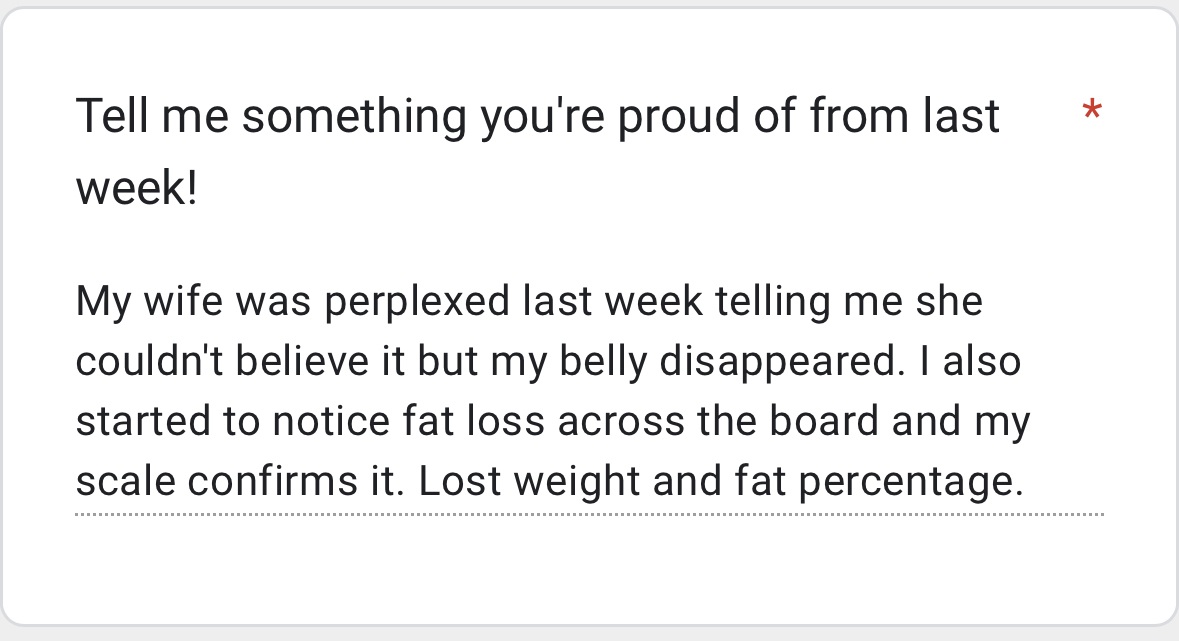 He quickly lost the belly fat and was able to fit his work shirts for the first time in a while.