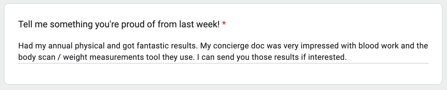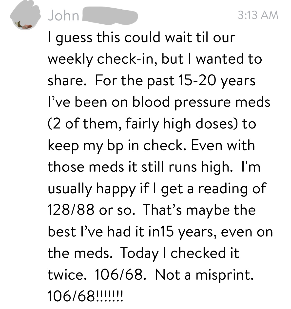 Dennis worked with me for 6 months, and impressed his concierge doctor with his great metrics.