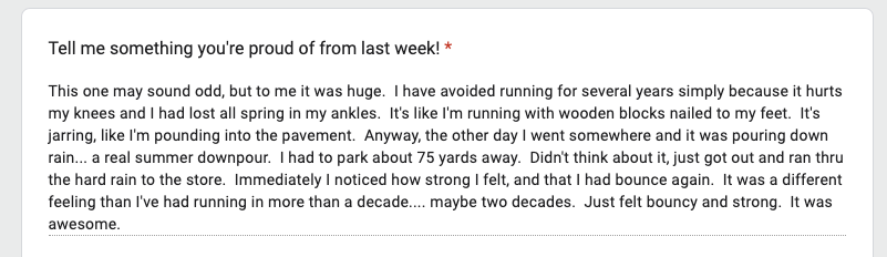 Now, he's losing belly fat, he's massively improved his stamina, and he can get onto the ground to play with his kids.